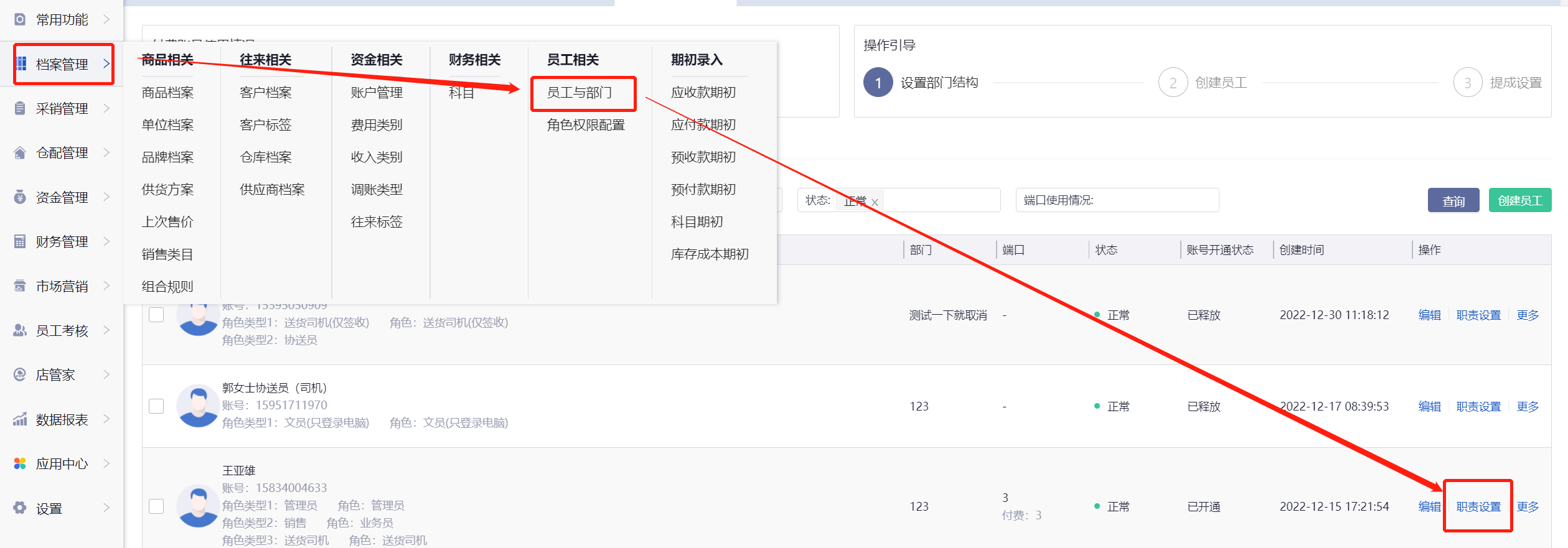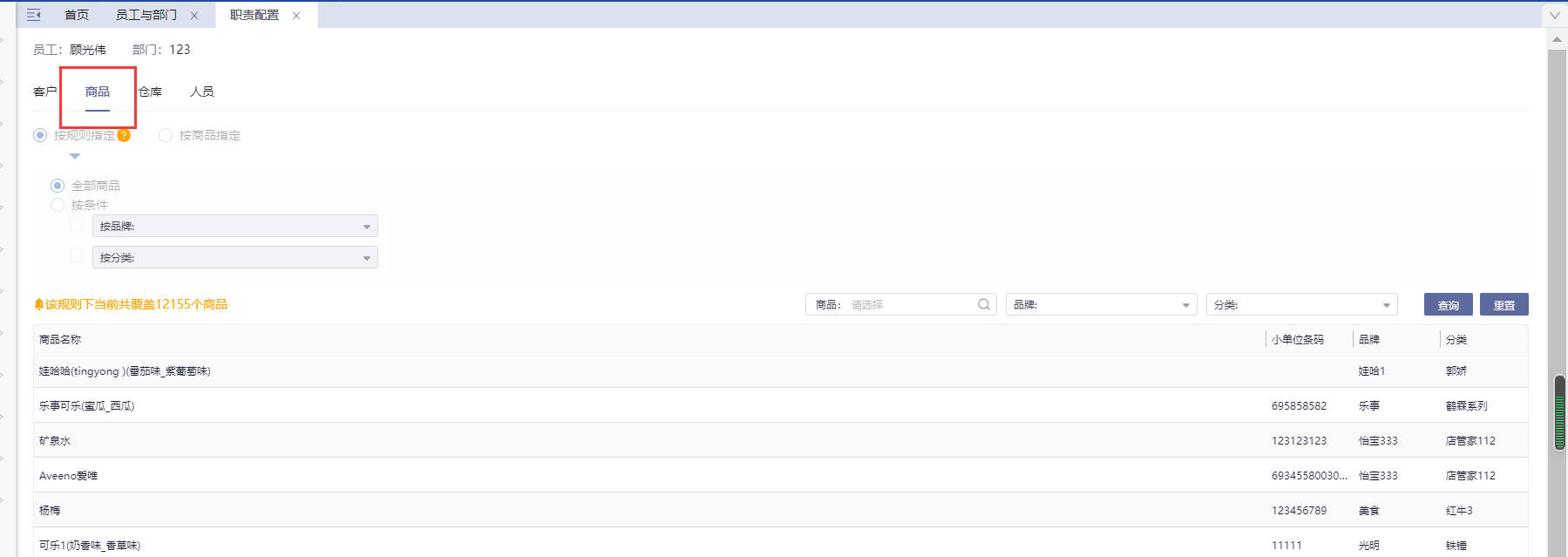 1、档案管理-员工与部门-职责设置里,商品职责如果不是全部商品,需要检查新增的商品是否在员工负责的商品范围内