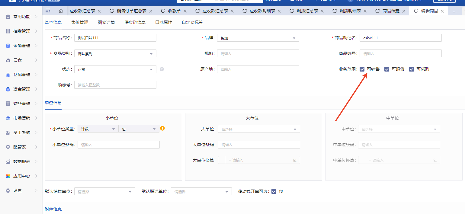 3、检查商品是否设置了开单范围