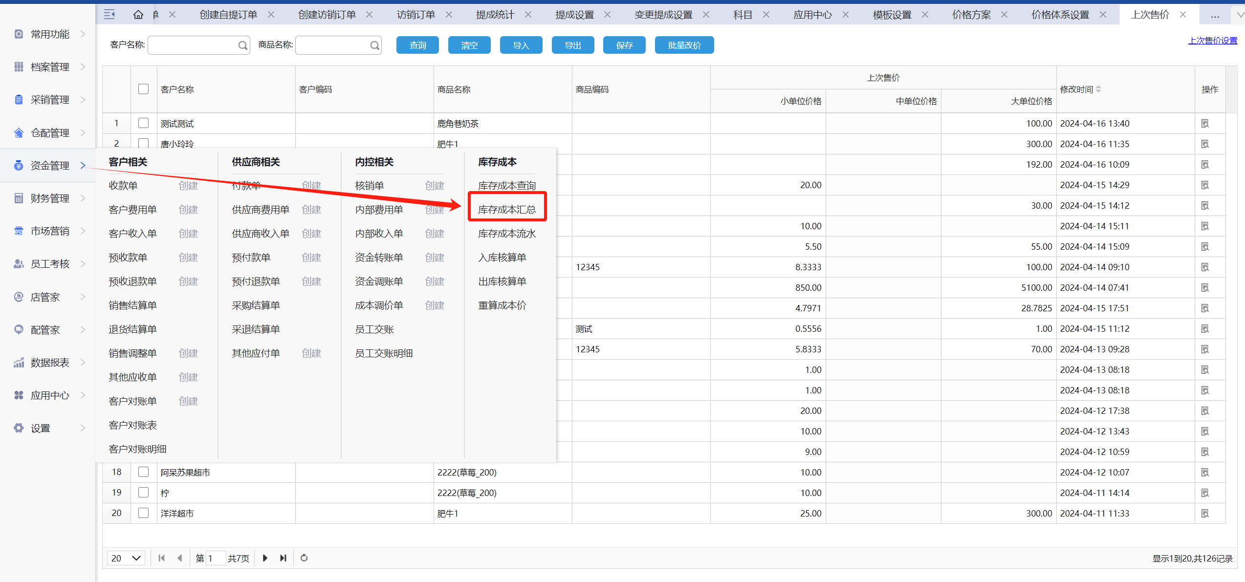 操作入口:资金管理-库存成本汇总进行导出成本价。