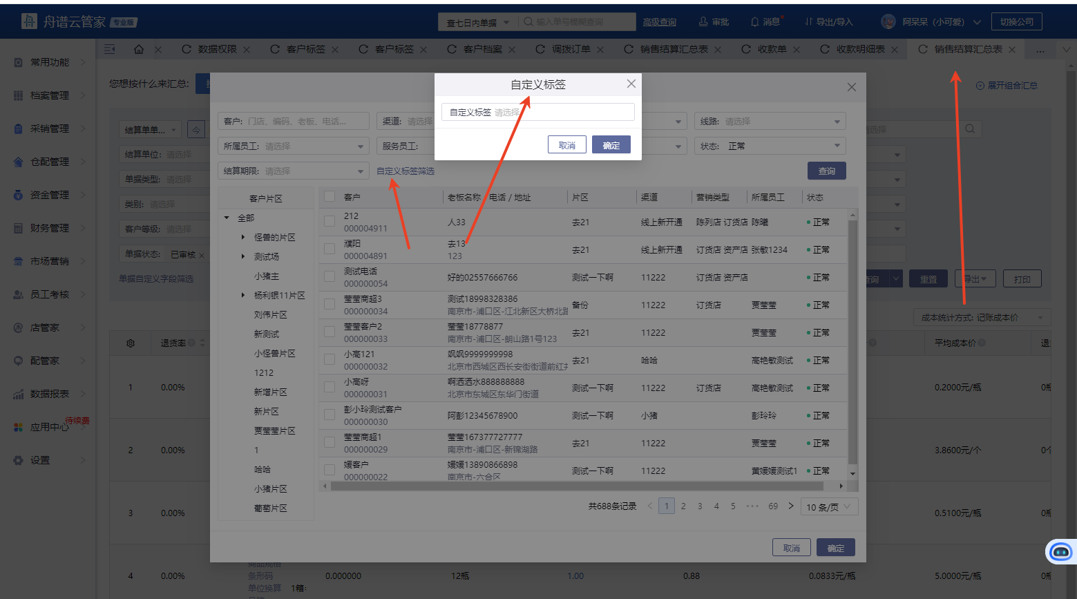 2.报表查询的时候可以根据自定义标签筛选客户。
