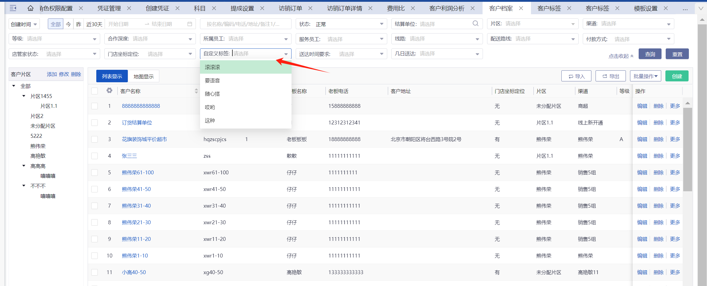 客户档案里自定义标签是什么作用在哪能体现出来?