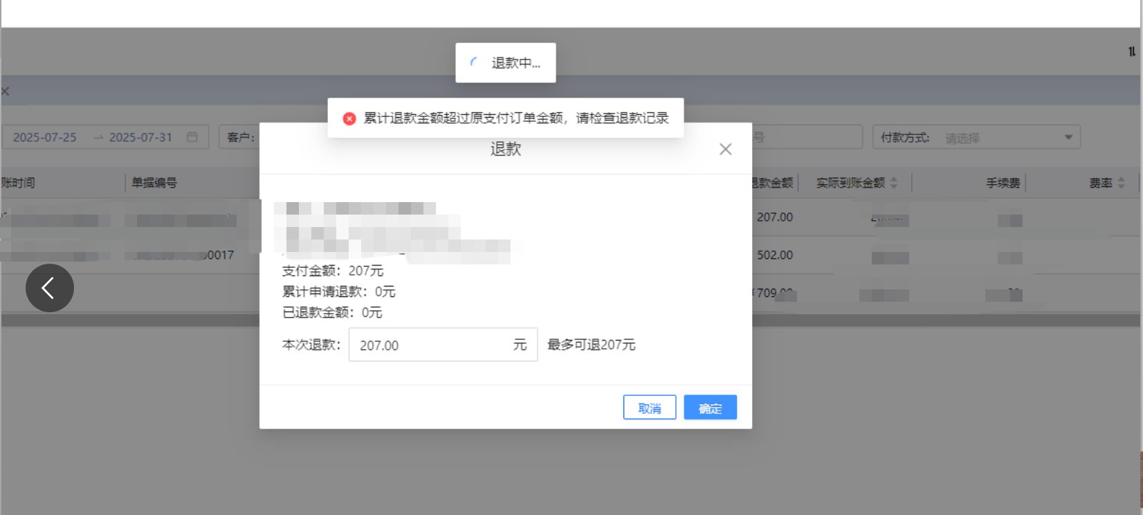情况二(如下图):客户实际支付的金额超过了退款的金额导致