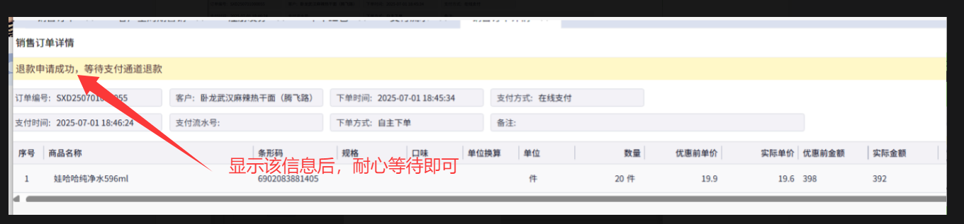 支付流水里面不需要再点击退款,耐心等待即可。