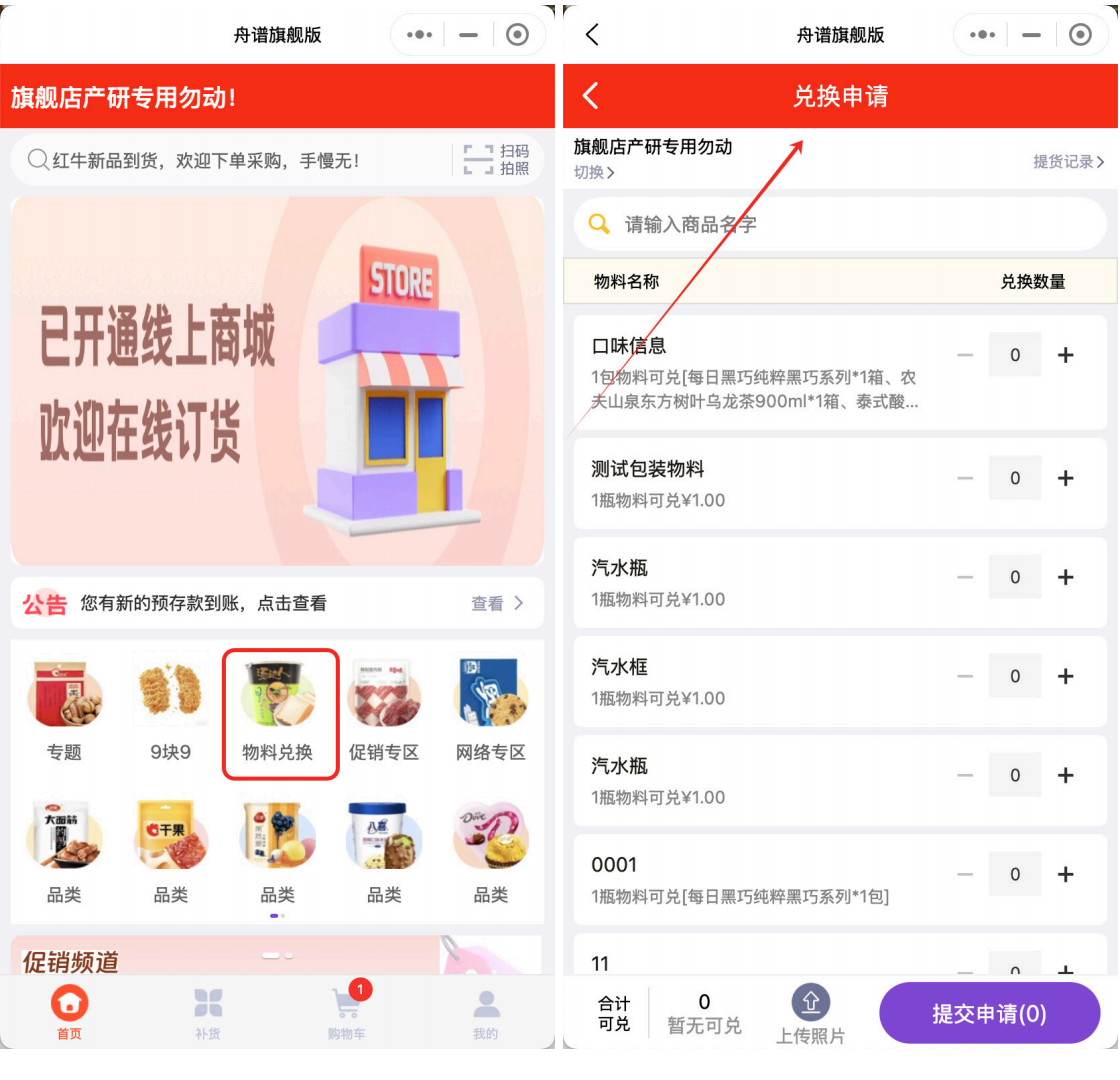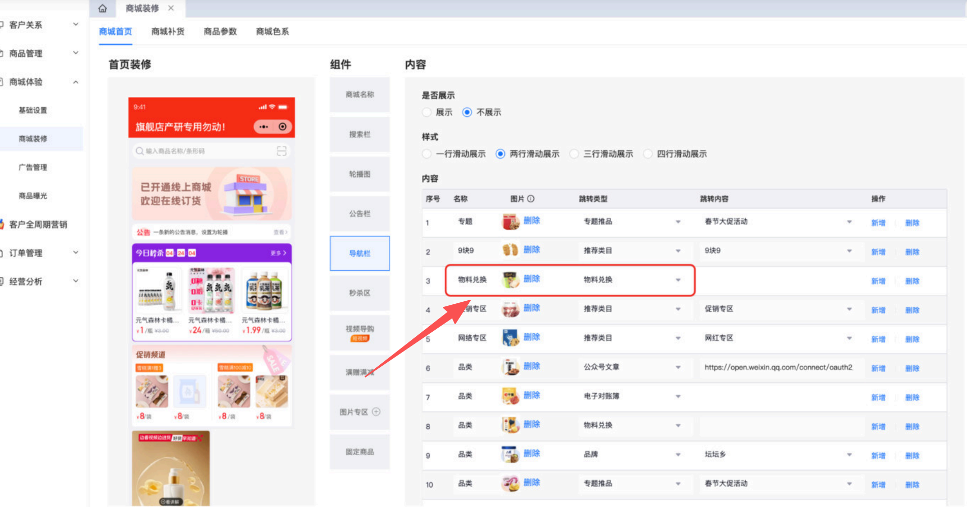 【旗舰版店管家】旗舰版导航栏、图⽚专区⽀持跳转“物料兑换”
