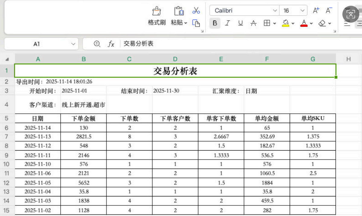 导出结果以筛选结果、统计维度为准: