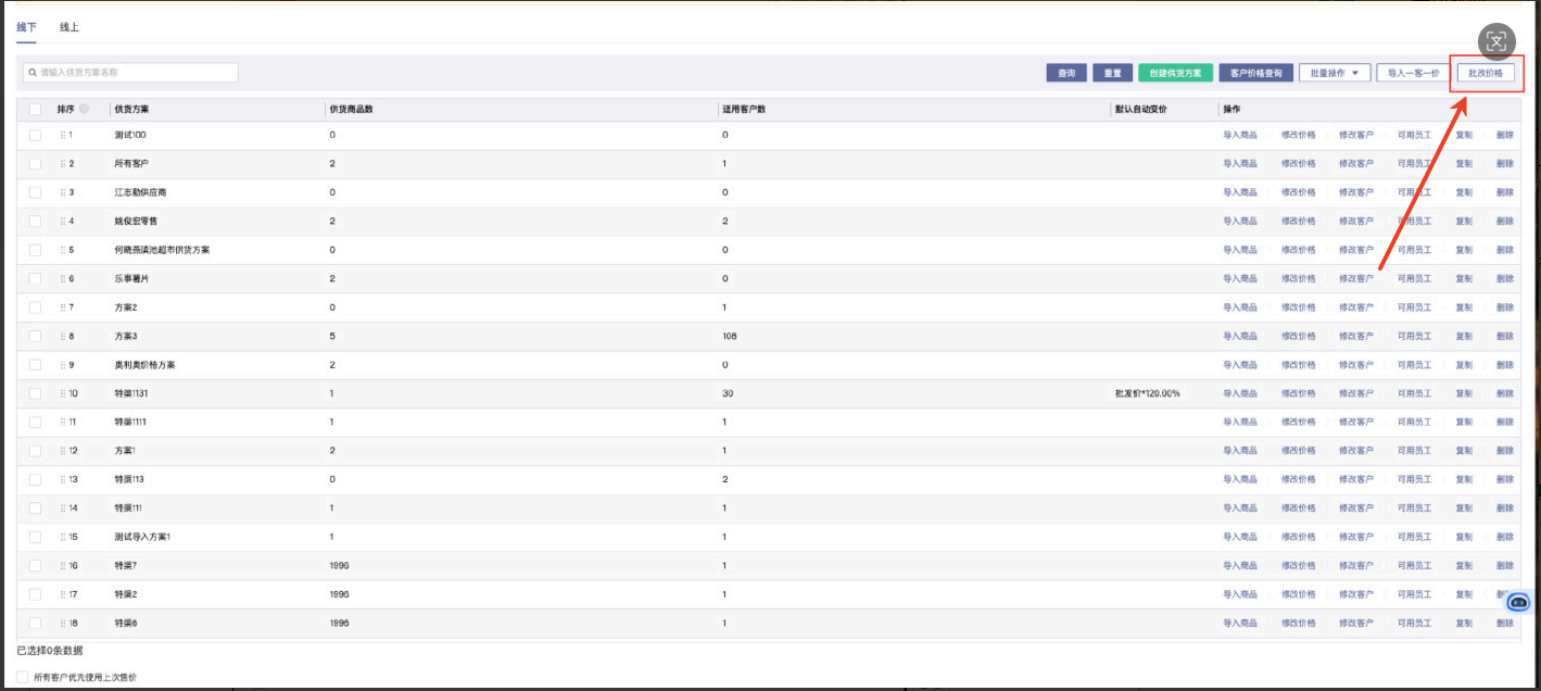 场景:适用于供货方案不多,但商品sku多。且供货方案调价频繁的情况