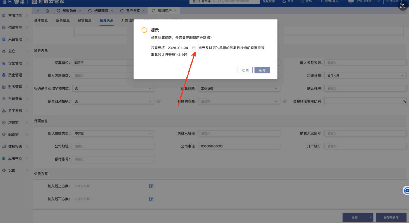 在修改时允许用户对一段时间内的结算单据重算到期日期。