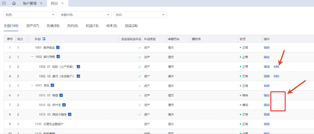 比如科目名称:微信、支付宝,预设数据目前不支持删除。