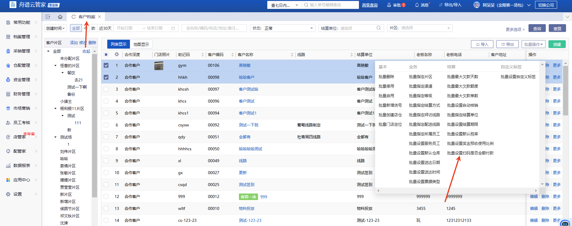 可以。在档案-客户档案-编辑客户或者批量操作均可。