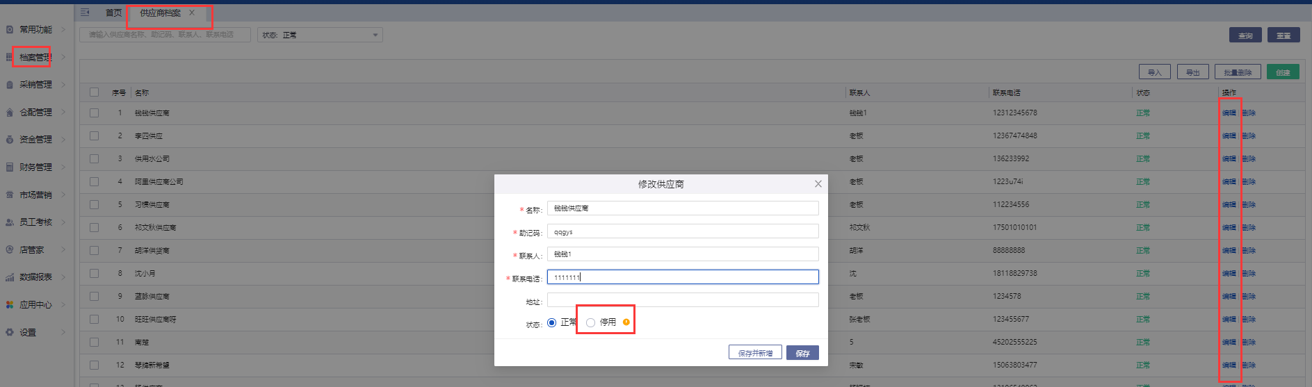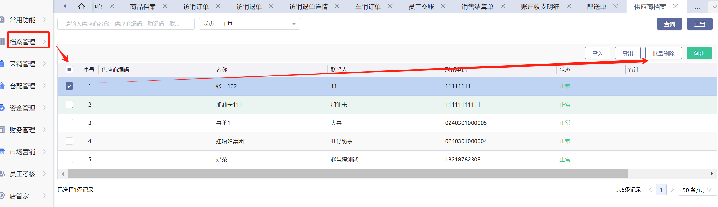 档案管理-供应商档案-勾选需要删除的档案--批量删除-确定。(有关联单据的供应商档案无法删除,只能停用)