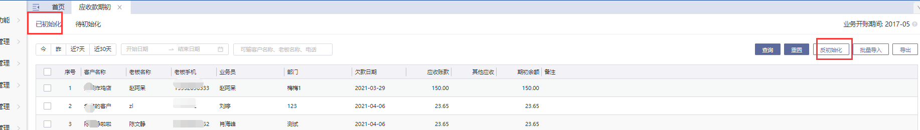 一、未使用的情况下,可以在档案管理-应收款信息填写错误,可进行反初始化,重新录入。