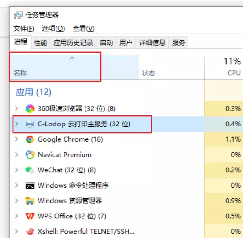 1)C-Lodop自己的问题,自己占用了自己的端口没有释放:卸载重装C-Lodop,卸载后再在任务管理器里面根据名称排序,查看进程是否全部释放,未释放则手动结束进程