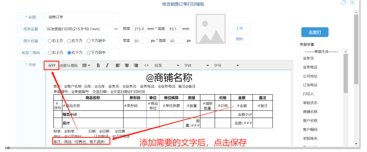 销售订单打印的时候想在下面增加一行字怎么设置?