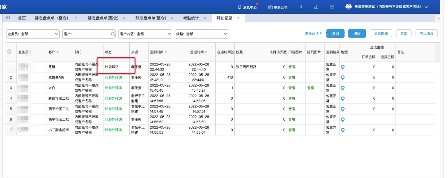 检查客户是否属于线路内,属于制定的线路内计入计划拜访,非线路内是计划外拜访。