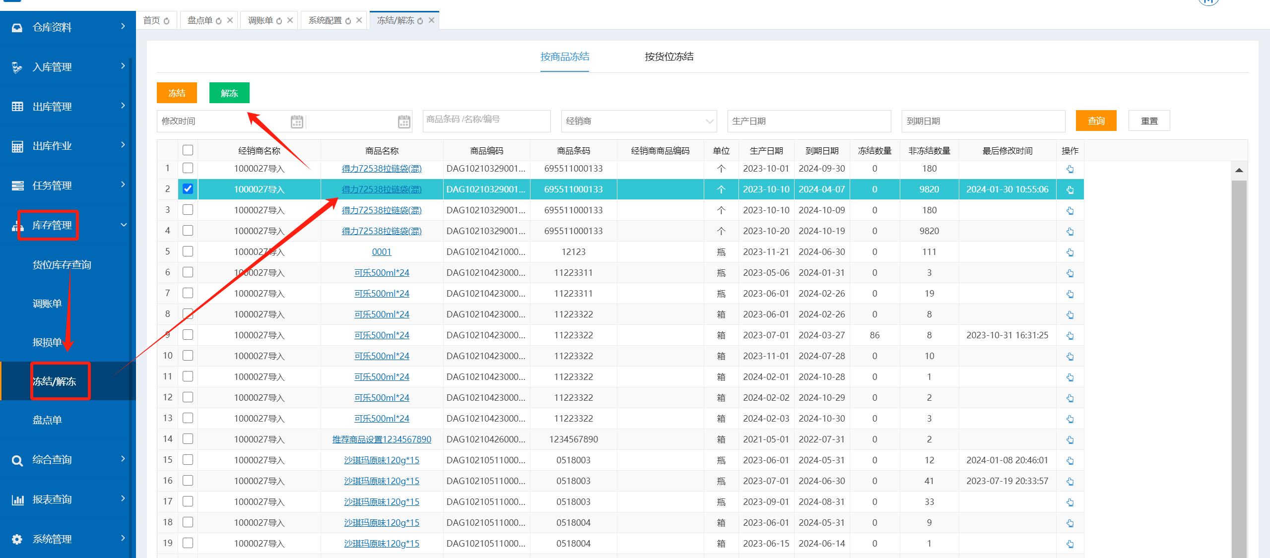 报损的时候货位被冻结了要怎么处理才能报损呢?