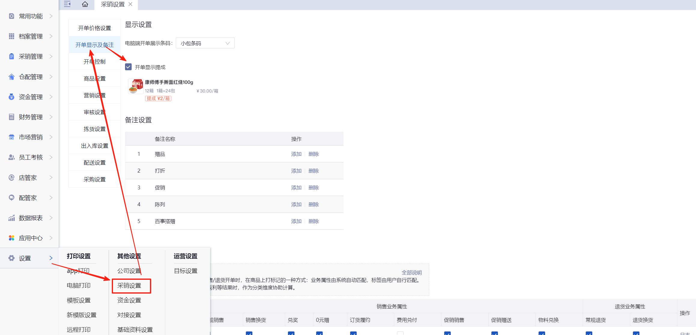 1、设置-采销设置-开单显示及备注,勾选开单显示提成;