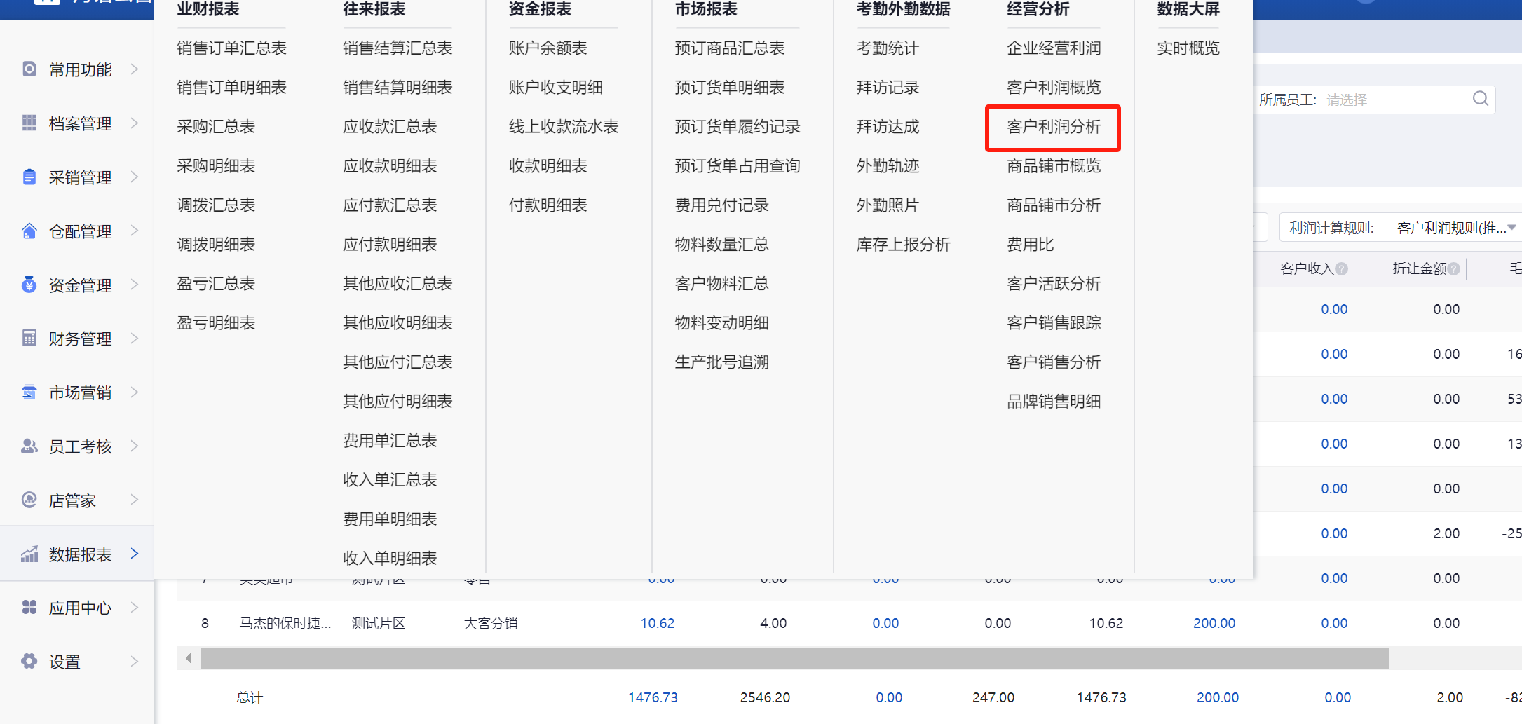 数据报表--客户利润分析,进行查看。