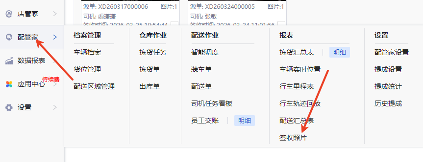 开通配管家的客户在配管家-签收照片查询。