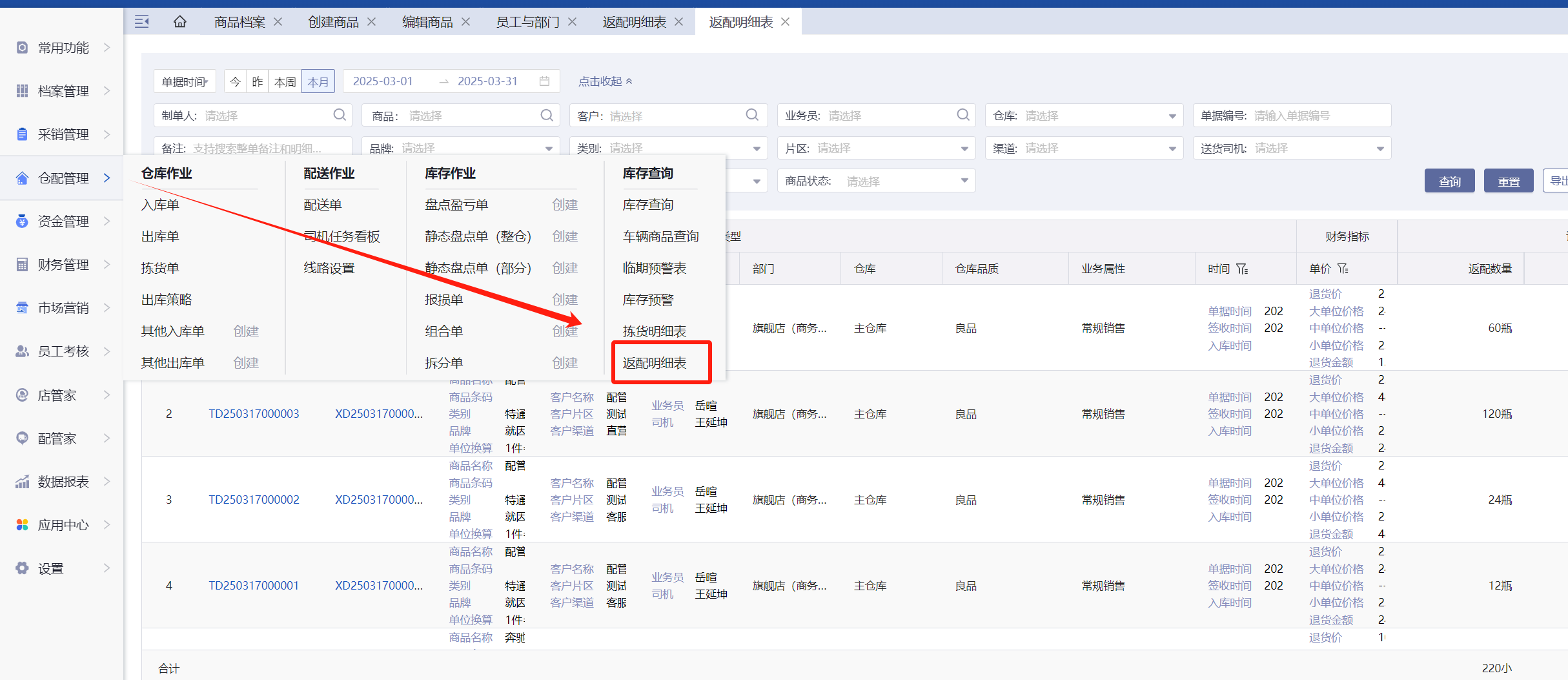 返配订单的商品汇总表/明细表。在哪里看?(想了解哪些商品返配率高)
