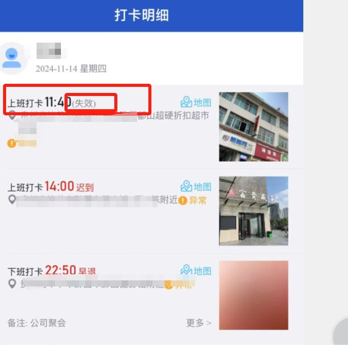 如果打卡2次,第一次打卡的记录会显示【失效】。