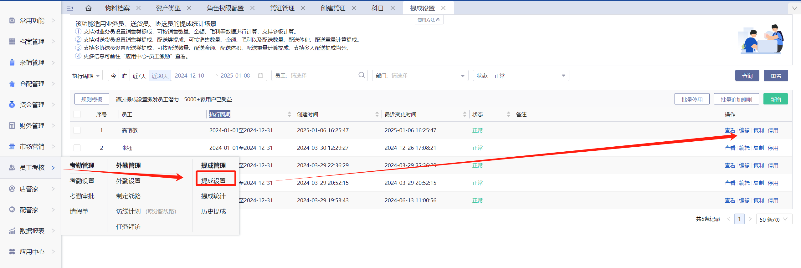 操作入口:员工考核-提成设置-编辑,修改执行周期即可。