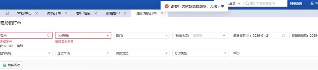 有销售欠款10元和退货欠款-10元,往来互抵所以不显示欠款,实际还是存在欠款金额。