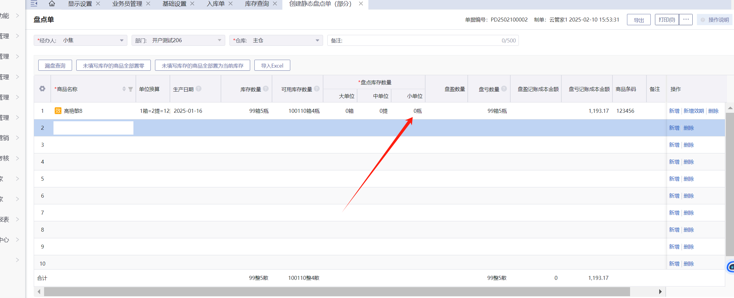 仓配管理-盘点单部分,选择需要处理的商品,把不需要的效期盘0即可,不需要盘点的效期删除。