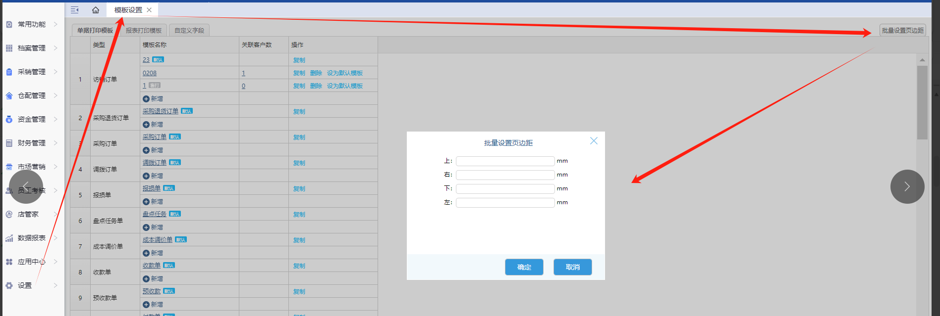 设置-模板设置-右上角批量设置页边距里,填写完需要预留的边距。
