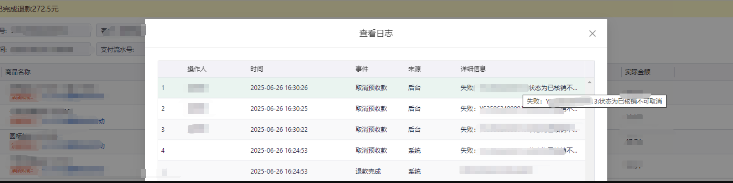 取消失败,不然的话银行卡和系统就对不上了,让取消核销单 然后在这边取消预收款。