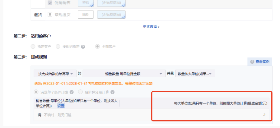 如果商品有多单位,目前系统不支持该功能,让用户更改为其他计算提成的方式。