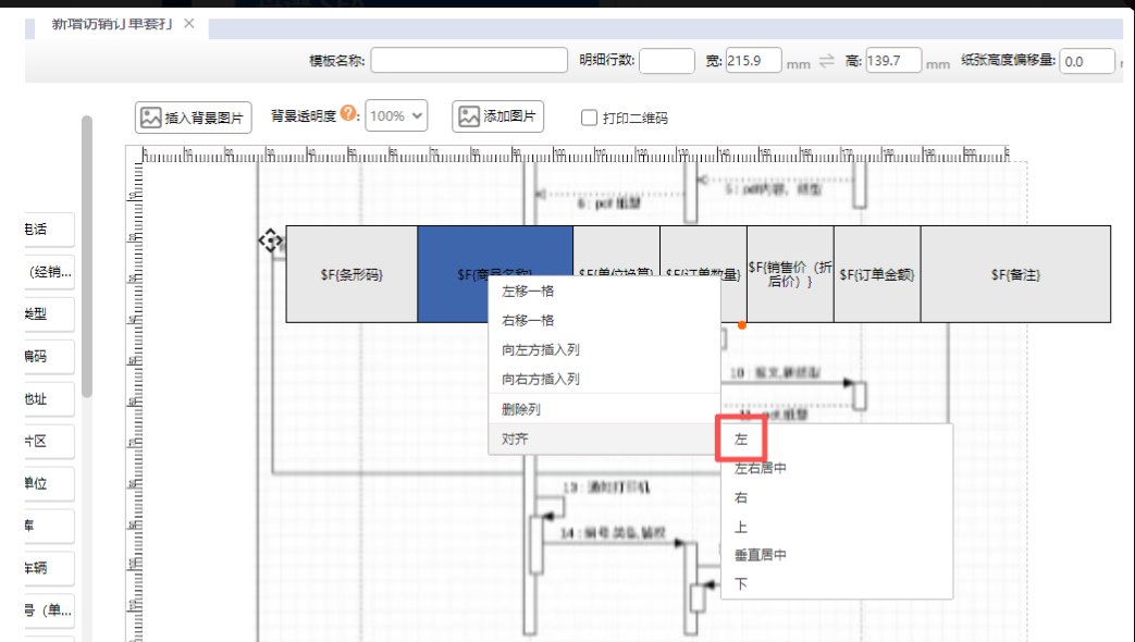 【新版模板】套打模版中想设置商品名称这些列靠左居中默认是中间居中的设置,怎么设置?
