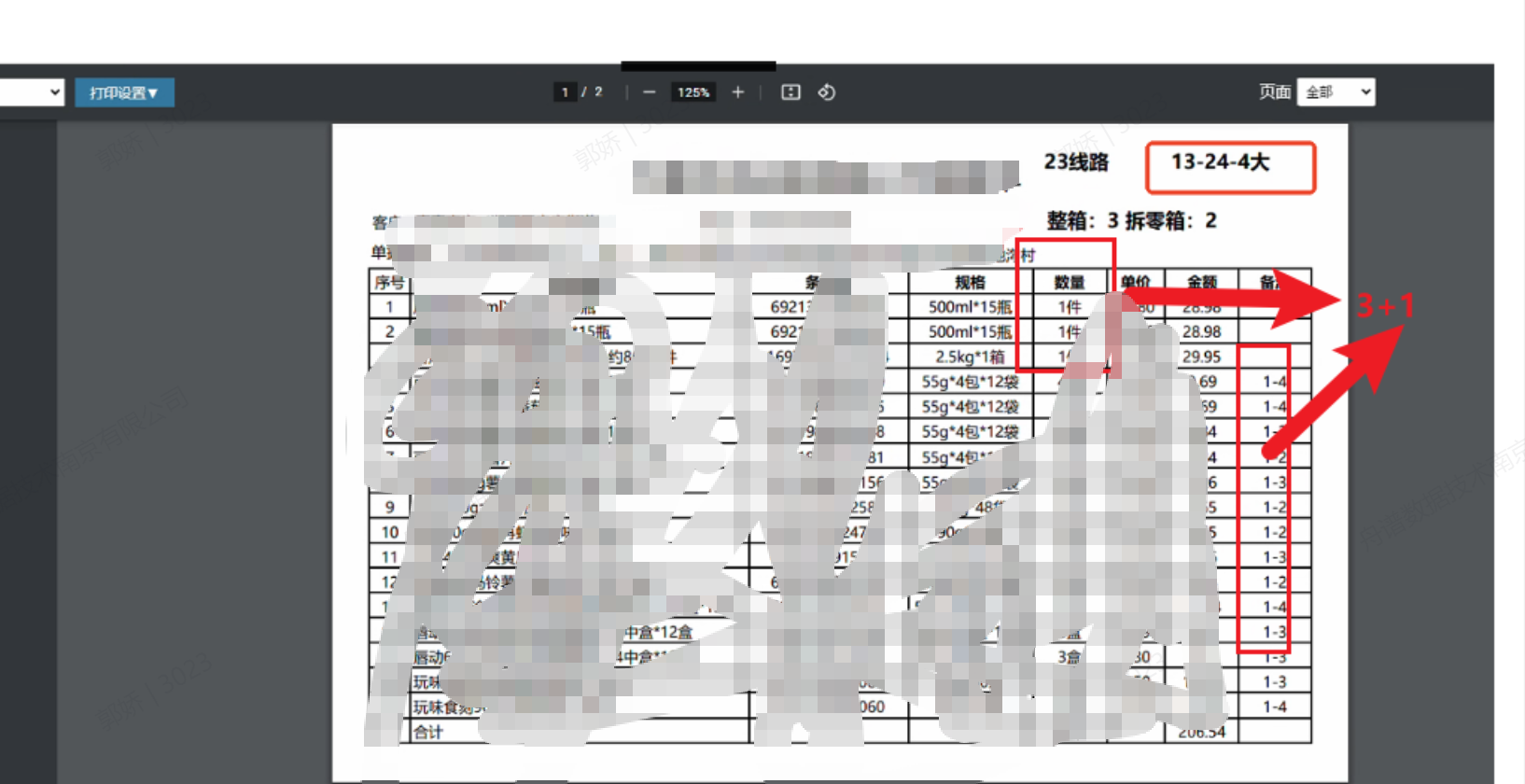 如下图:13-24-4大取值是,因复核未手动输入箱标,13-24是区号,4大是按照拣货时,大单位的数量+ 小单位封箱的数量(备注为小单位所属整件中的零散数)