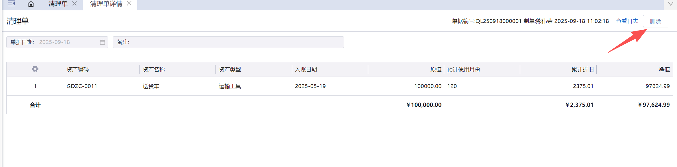 清理单怎么删除?