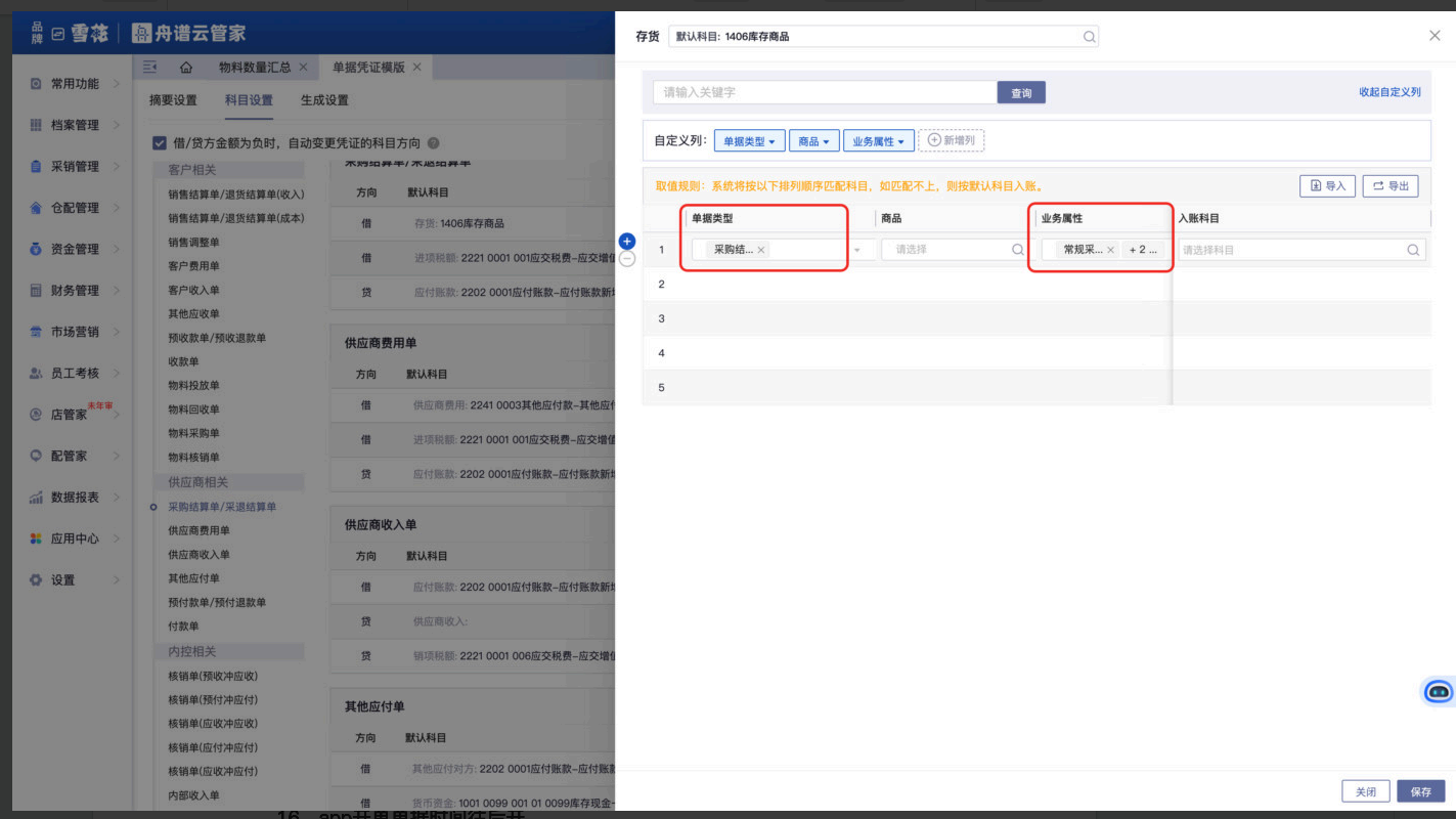 同时,支持按采购结算单不同的业务属性,生成不同的入账科目。