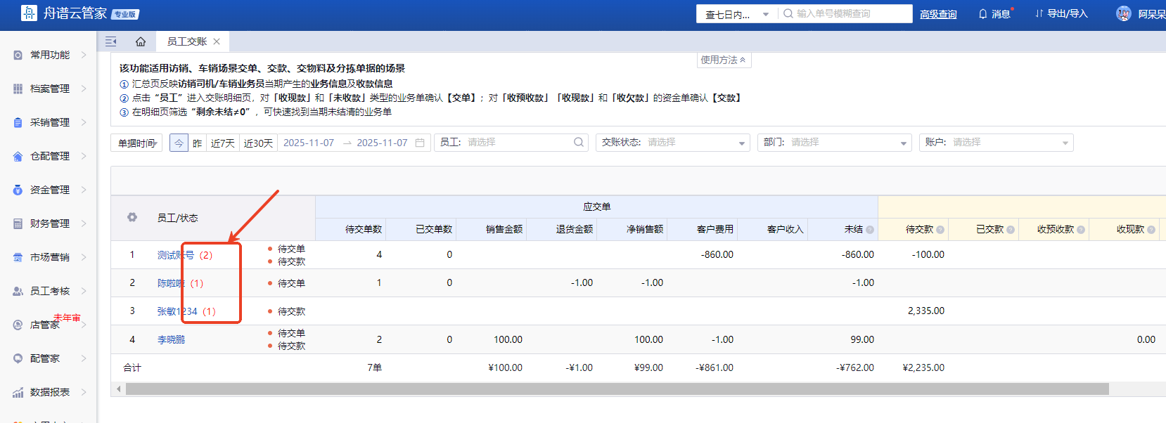 员工交账的红色数字是什么?