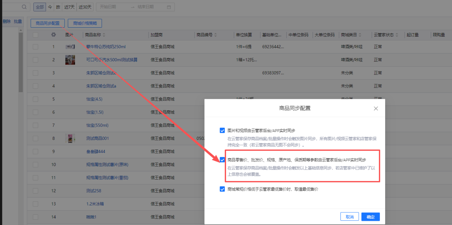 如果开启了同步开关:店管家这边的零售价为空,会使用云管家的零售价同步。如果店管家的零售价不为空,则保留店管家的零售价