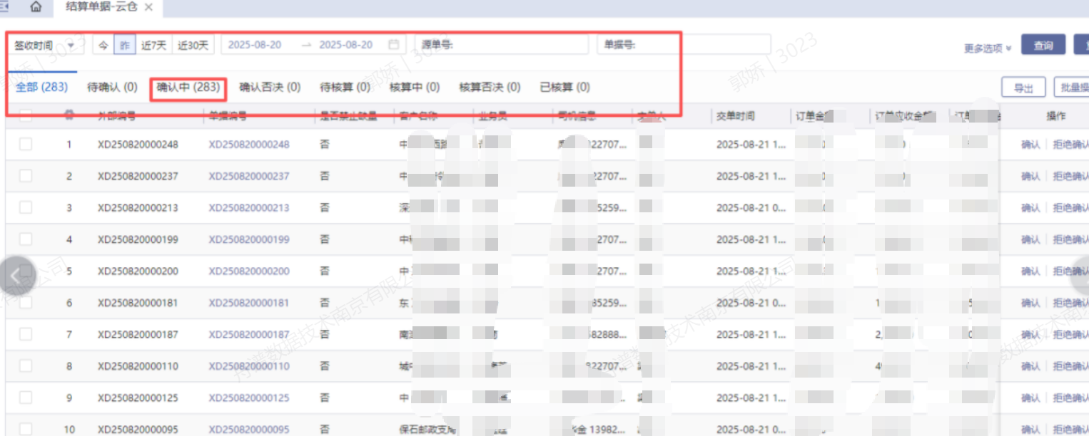 结算单据的签收时间,是指20号签收的,20号签收的单子有可能当天交,也有可能21号交。