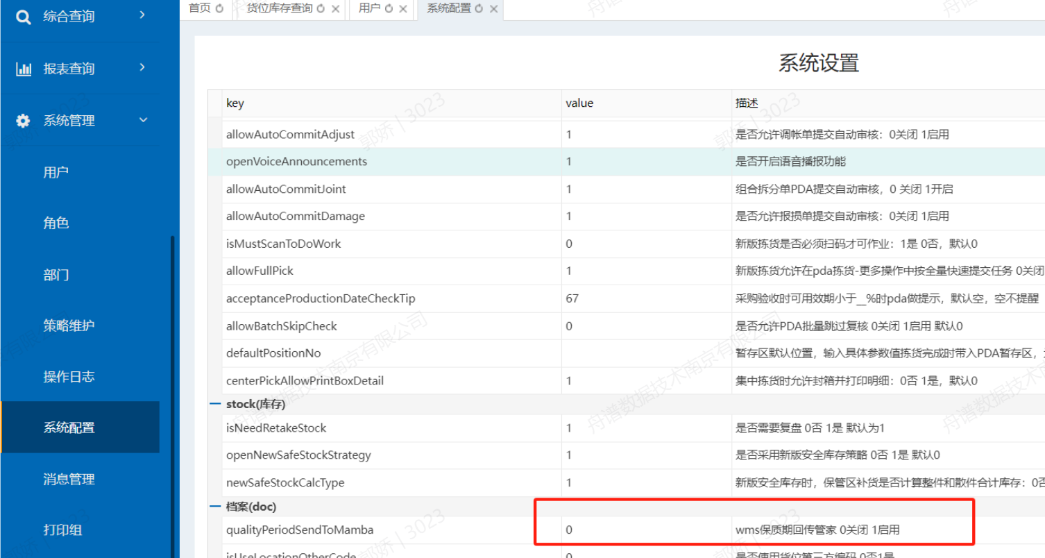 【云仓】系统配置中:WMS保质期开启回传云管家表示什么意思?