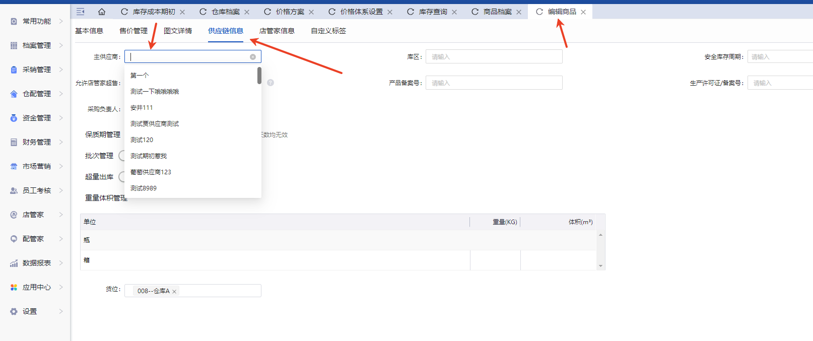 此处的供应商需在档案管理-商品档案-供应链信息里维护主供应商。也可在商品档案列-批量操作,批量设置主供应商。