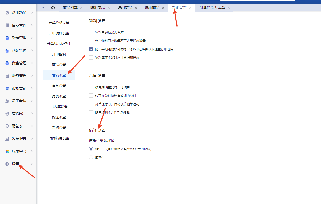 在设置-采销设置-营销设置-借还设置里配置。