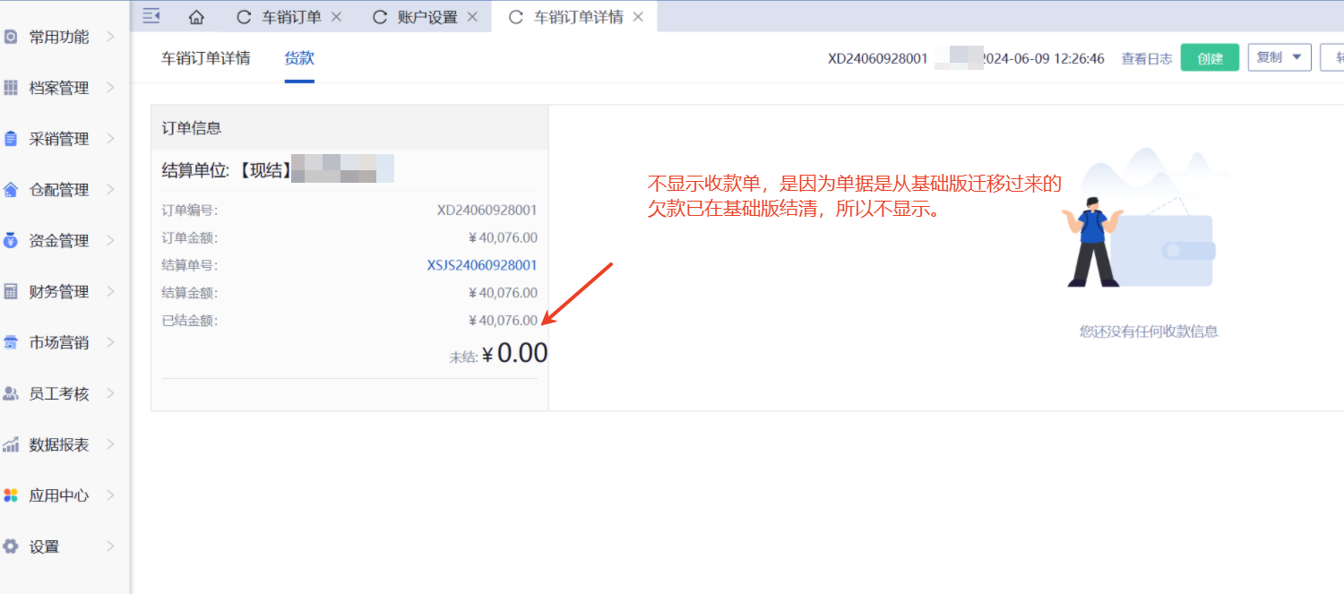 进入销售订单后,货款页面显示已结,但是没有关联收款单是什么原因?