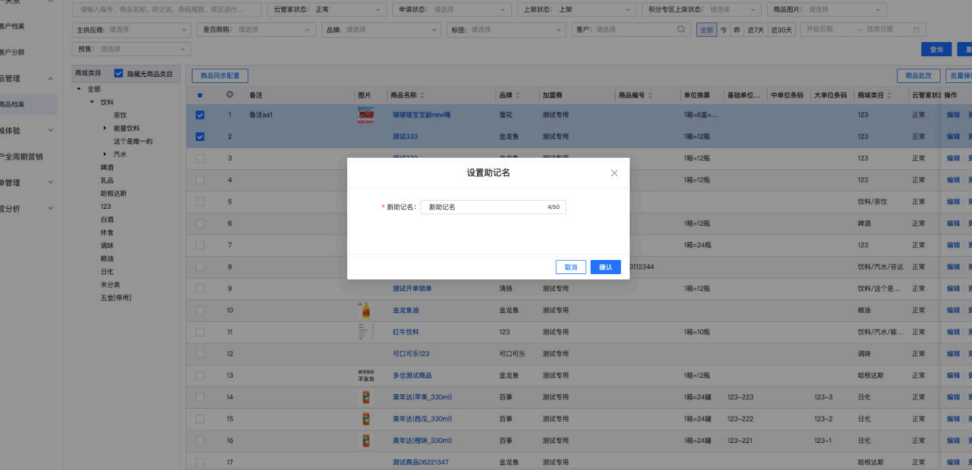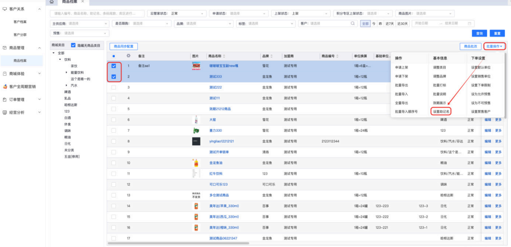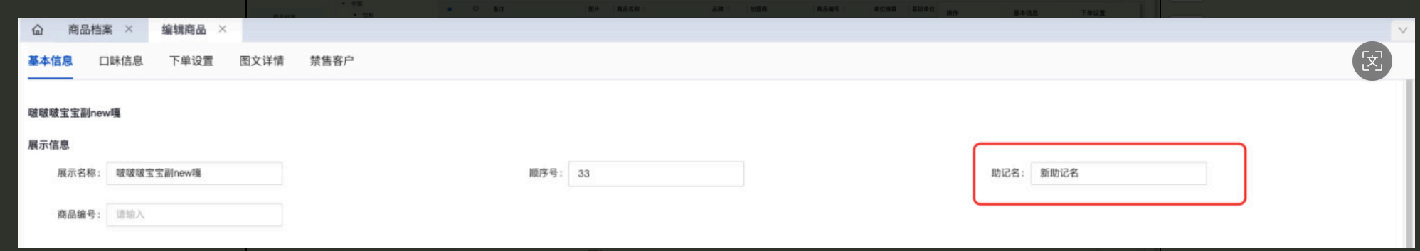 【旗舰版/平台版】商品档案⽀持批量设置助记名