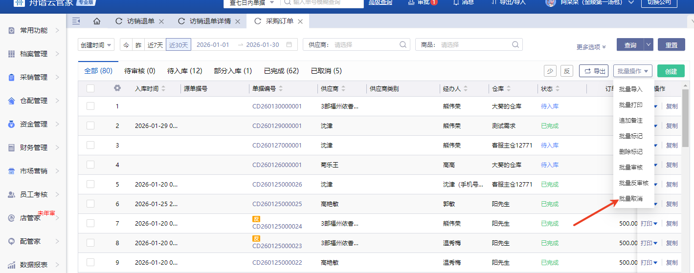 采购订单可以批量取消吗?
