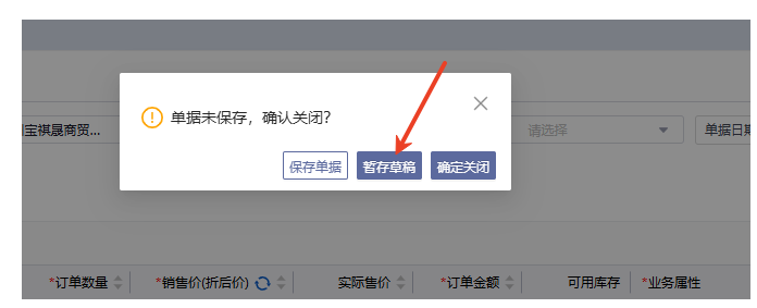 重新创建该类型订单的时候会显示出草稿单内容。