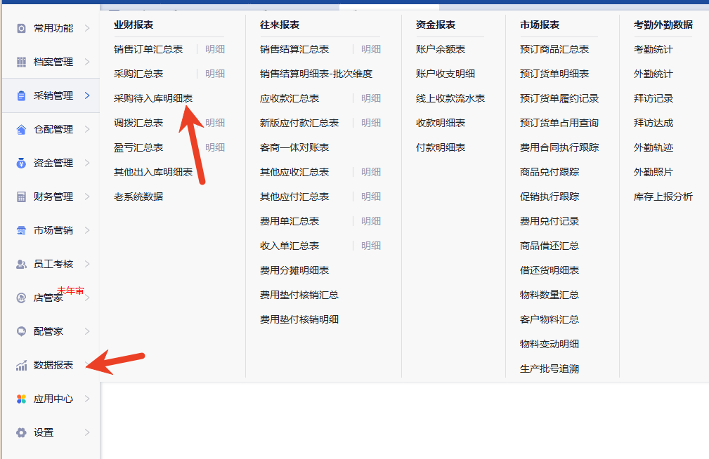部分入库的采购单,如果还没有全部完成入库,在哪可以查询数据?