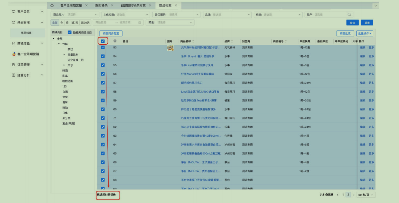【旗舰版店管家】商品档案商品⽀持跨⻚全选吗?