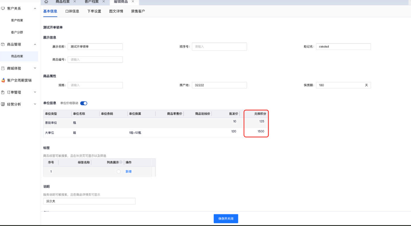 支持旗舰店及平台店(加盟商、平台商)在商品档案单独配置商品兑换积分