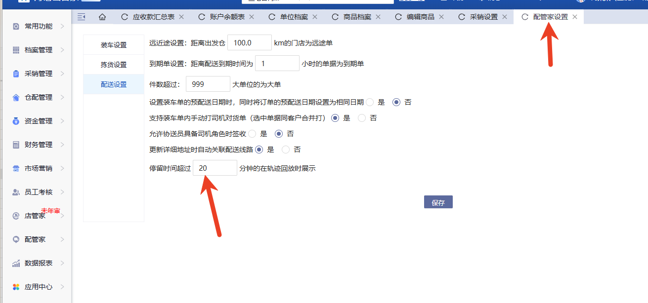 在配管家-配管家设置-配送设置里设置超过X分钟的在轨迹回放展示。