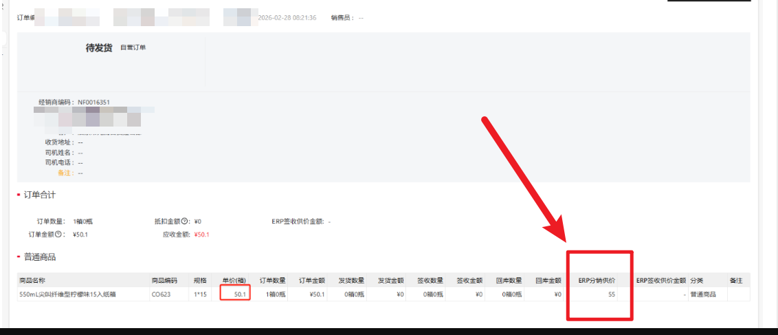 舟谱价格不直接同步(修改)农夫的开单价,会单独显示一列ERP分销价格。