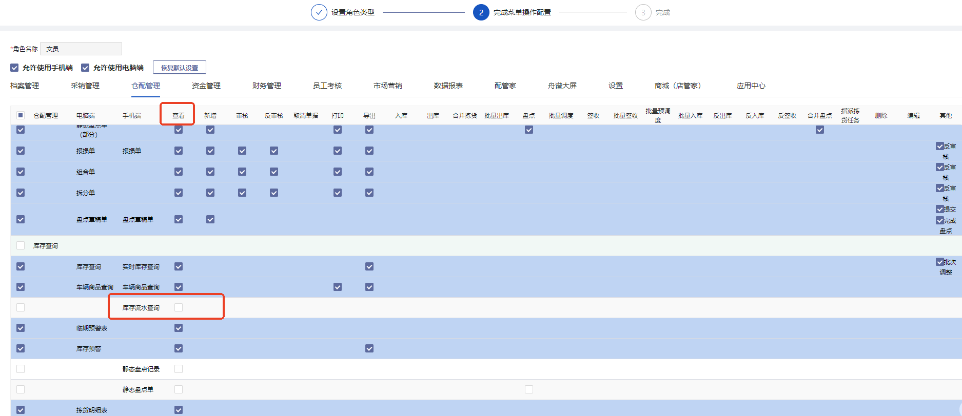 是的,不受权限控制。如果做了,流水就不完整了,对不上数据。如果不需要查询该报表,需要将档案管理-角色权限配置-仓配管理-